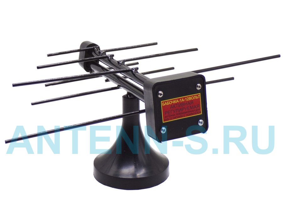 - "БАБОЧКА- 1А-12ВОЛЬТ" АКТИВНАЯ комнатная телевизионная антенна предназначена для приема цифрового DVB-T2 и аналогового телевизионного сигнала ДМВ диапазона