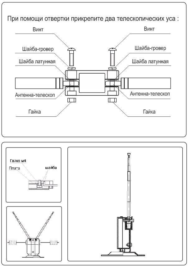 - Телескопичекие вибраторы регулируются по длине и углу наклона для настройки на максимальный уровень принятого сигнала