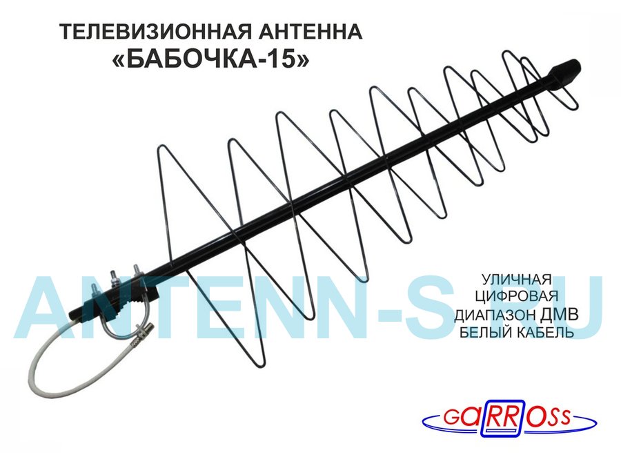 В корзину Купить в 1 клик "БАБОЧКА-15" WHITECABLE телевизионная антенна уличная цифровая DVB-T2 диапазон ДМВ , белый кабель