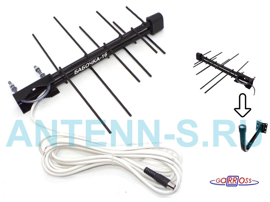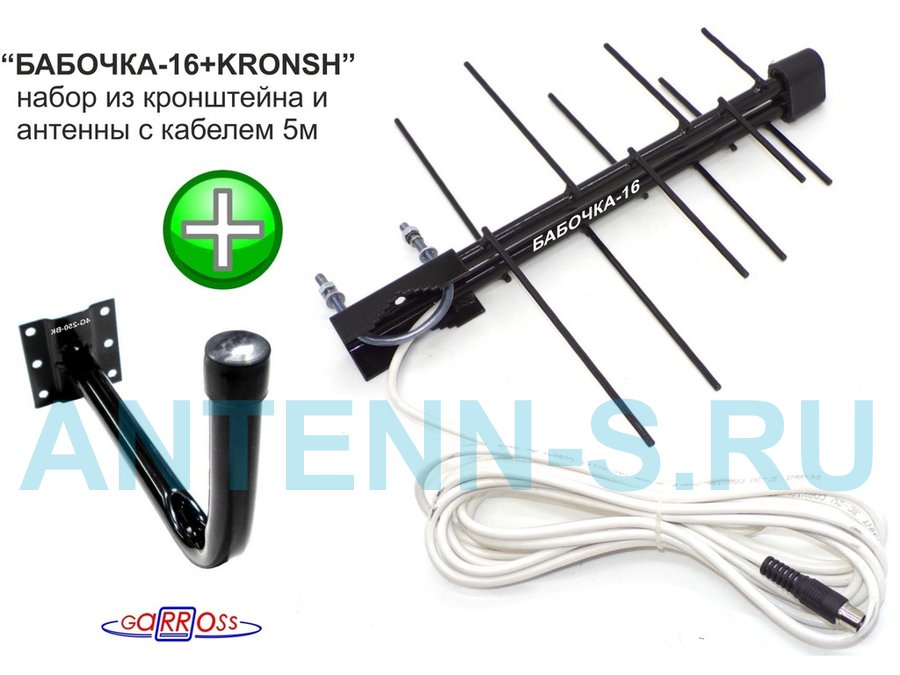В корзину Купить в 1 клик "БАБОЧКА-16+KRONSH" набор кронштейн и антенна уличная для приёма телеканалов DVB-T2, кабель 5 метров