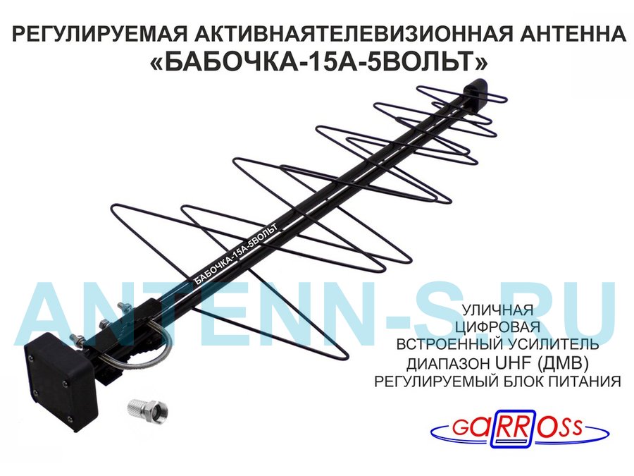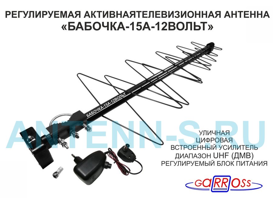 В корзину Купить в 1 клик "БАБОЧКА-15А-12ВОЛЬТ" РЕГУЛИРУЕМАЯ АКТИВНАЯ ЧЁРНАЯ уличная антенна DVB-T2, с регулируемым усилителем