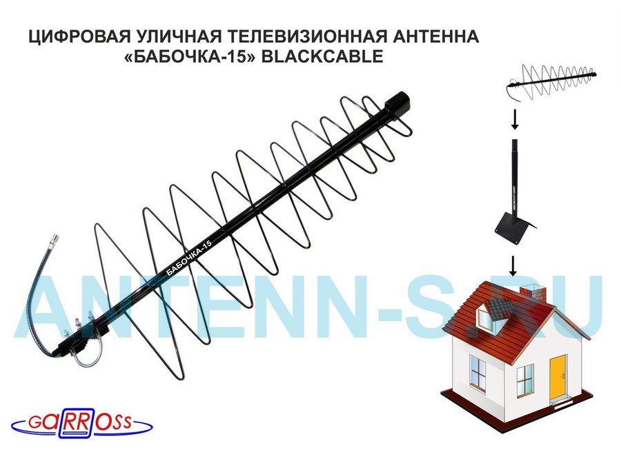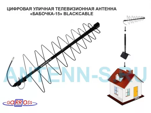 В корзину Купить в 1 клик "БАБОЧКА-15" BLACKCABLE телевизионная антенна уличная цифровая DVB-T2 диапазон ДМВ , черный кабель