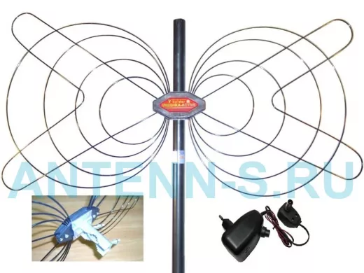 В корзину Купить в 1 клик "БАБОЧКА-15А-5ВОЛЬТ" АКТИВНАЯ ЧЁРНАЯ уличная ТВ антенна с усилителем DVB-T2, питание 5В от приёмника