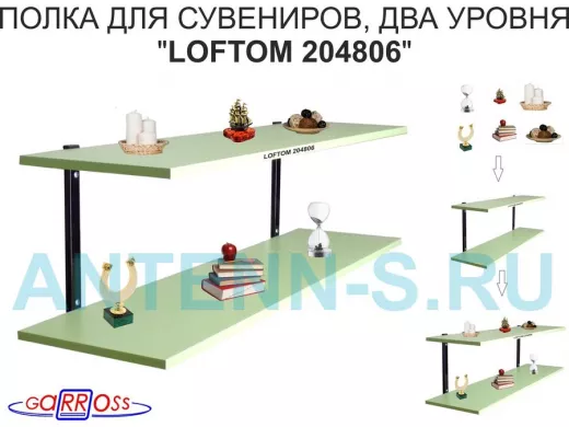Полка для сувениров, высота 25см, два уровня "LOFTOM 204806" размер 120х30см, чёрный/салатовый