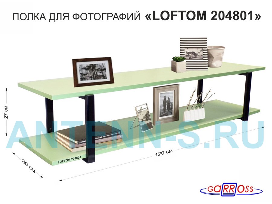 В корзину Купить в 1 клик Полка для фотографий и игрушек, высота 25см "LOFTOM 204801" размер 120х30см, чёрный/салатовый