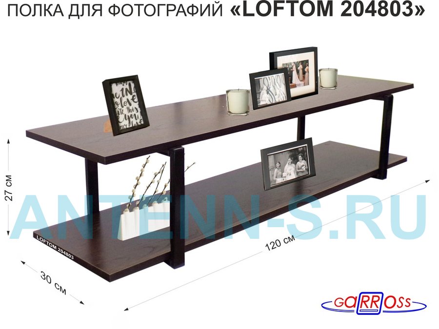 В корзину Купить в 1 клик Полка для фотографий и игрушек, высота 25см "LOFTOM 204803" размер 120х30см, чёрный/венге