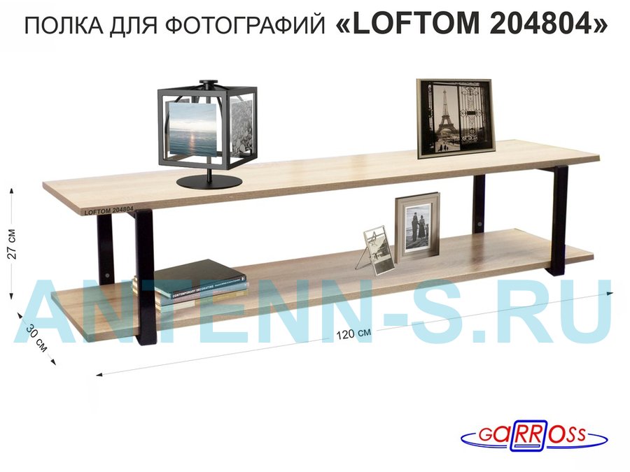 В корзину Купить в 1 клик Полка для фотографий и игрушек, высота 25см "LOFTOM 204804" размер 120х30см, чёрный/дуб сонома