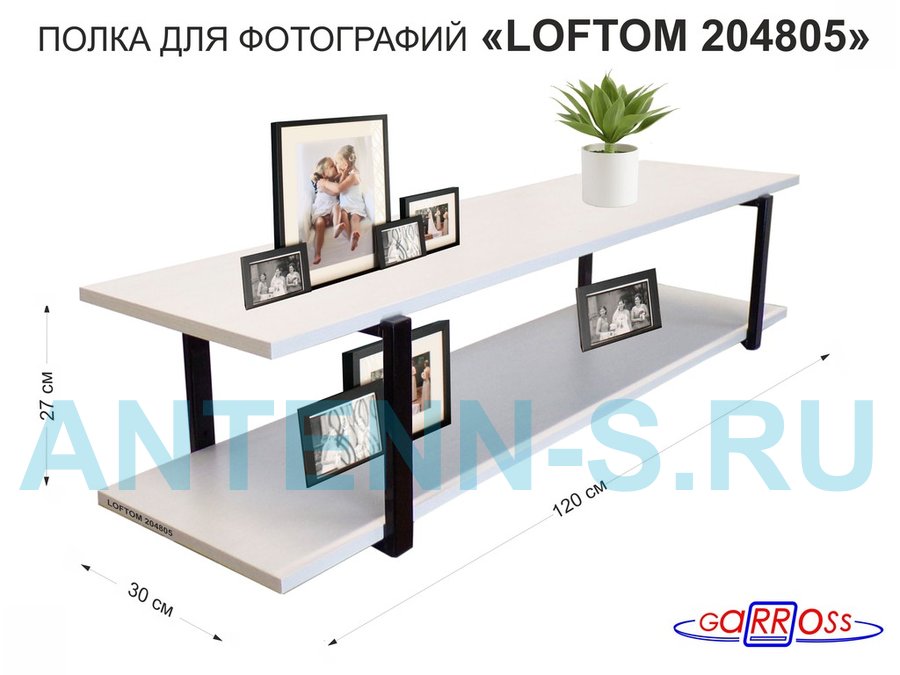 В корзину Купить в 1 клик Полка для фотографий и игрушек, высота 25см "LOFTOM 204805" размер 120х30см, чёрный/сосна выбелен.
