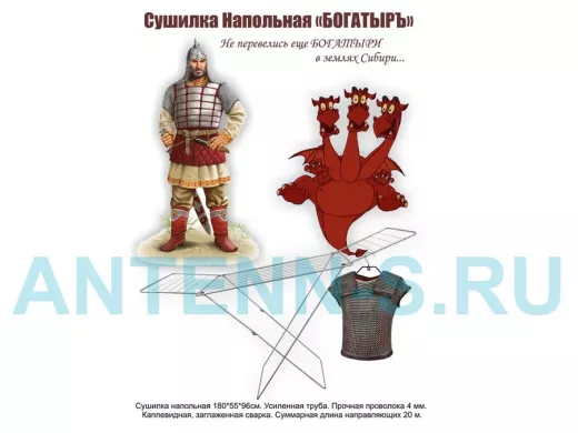 - "БОГАТЫРЬ STYEL - 6" сушилка напольная СЕРАЯ 20 метров, предназначена для сушки белья