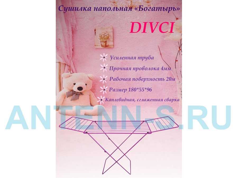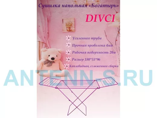 - "БОГАТЫРЬ" DIVCIсушилка напольная РОЗОВАЯ 20 метров, предназначена для сушки белья