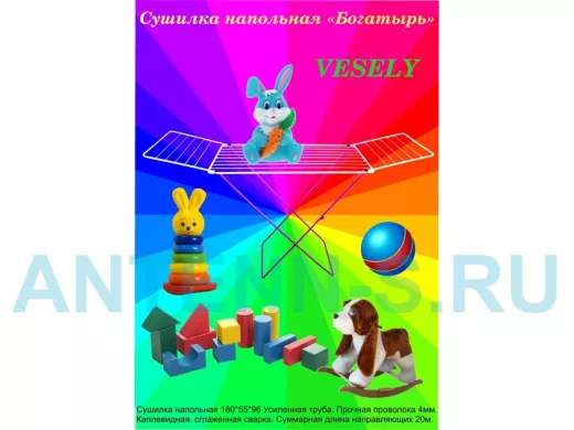 - "БОГАТЫРЬ" VESELY сушилка напольная РОЗОВО-БЕЛАЯ 20 метров, предназначена для сушки белья