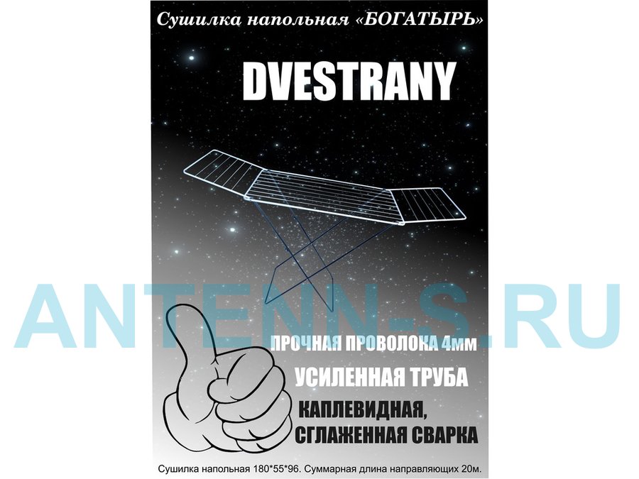 - "БОГАТЫРЬ" DVESTRANY сушилка напольная ЧЁРНО-БЕЛАЯ 20 метров, предназначена для сушки белья