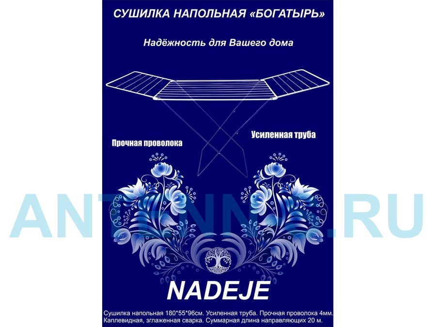 - "БОГАТЫРЬ" NADEJE сушилка напольная СИНЕ-БЕЛАЯ 20 метров, предназначена для сушки белья