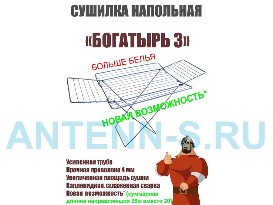 - "БОГАТЫРЬ-3" сушилка напольная СЕРЕБРИСТАЯ 26 метров, предназначена для сушки белья