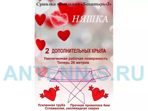 - "БОГАТЫРЬ-3" НЯШКА сушилка напольная РОЗОВАЯ 26 метров, предназначена для сушки белья