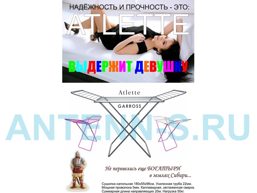 - "ATLETTE-1" сушилка напольная СЕРЕБРИСТАЯ 20 метров, предназначена для сушки белья