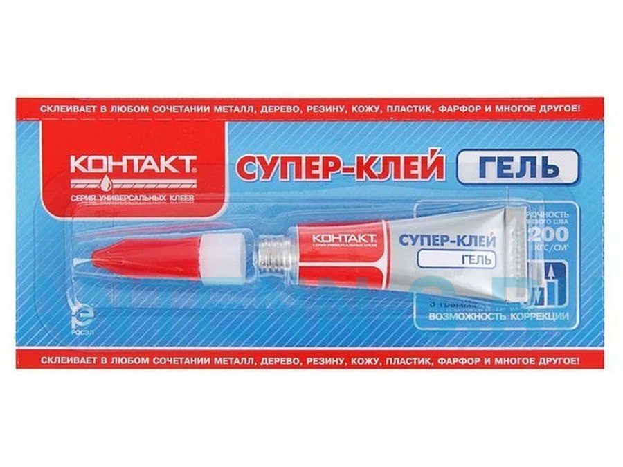 В корзину Купить в 1 клик Супер-клей "Контакт" гель (12 штук на карте) 3 грамма
