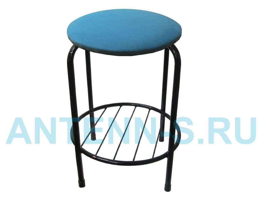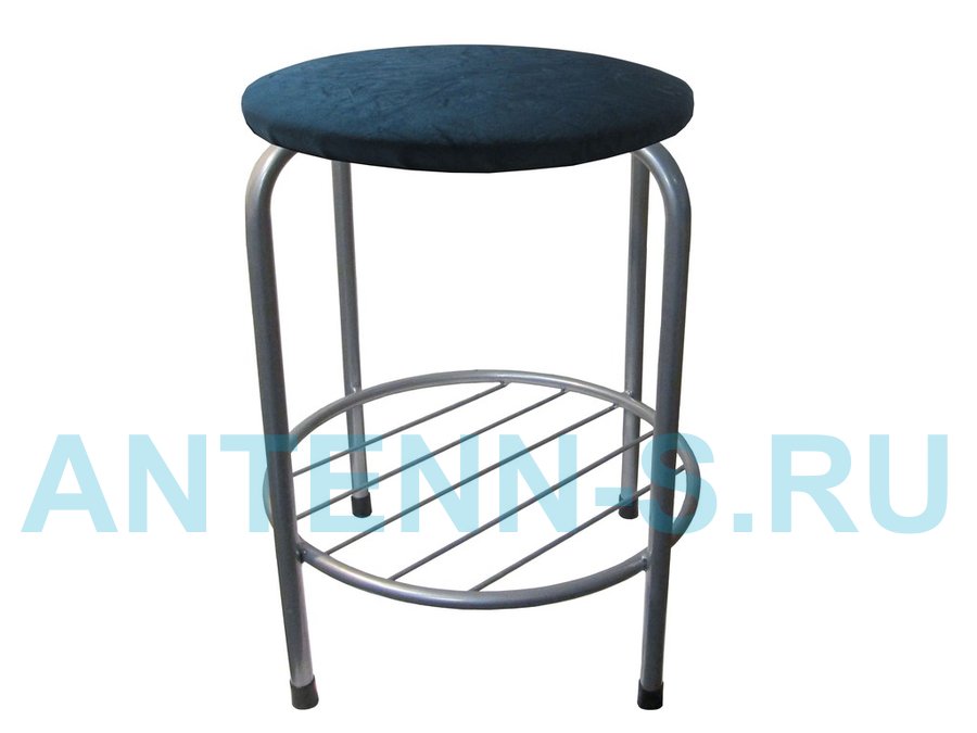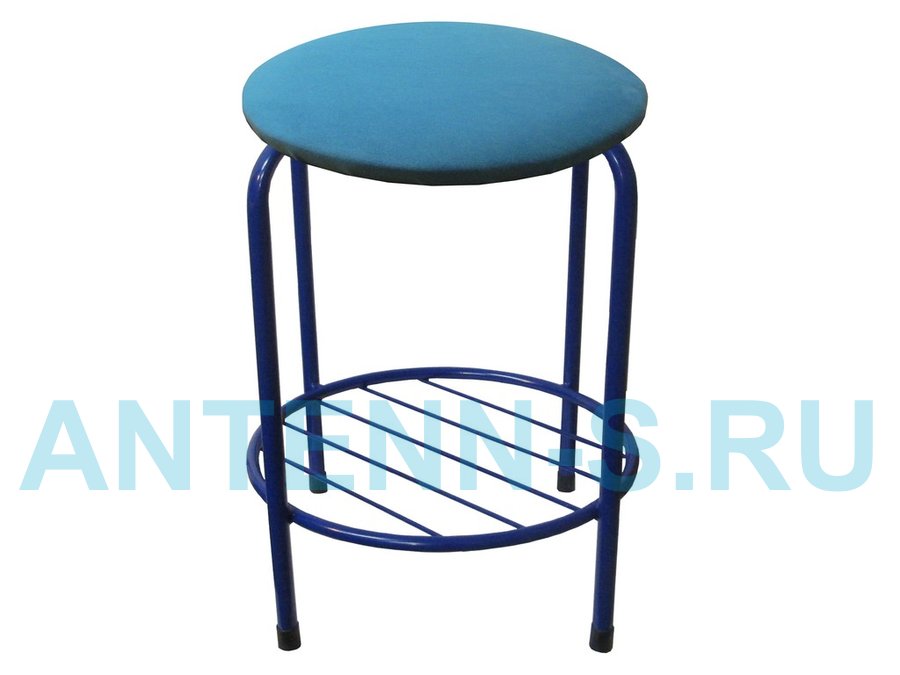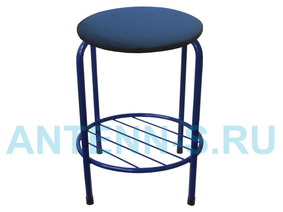 В корзину Купить в 1 клик Табурет с подставкой для ног и полкой "TABURETTO-20461" круглое сиденье, чёрные ножки, синий, ткань