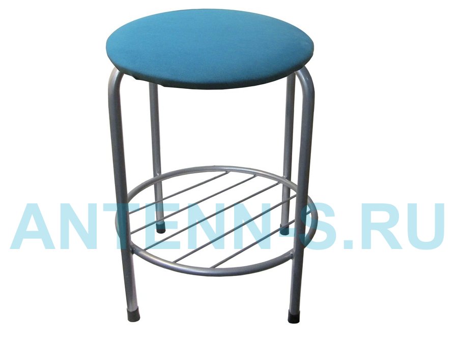 В корзину Купить в 1 клик Табурет с подставкой для ног и полкой "TABURETTO-20478" круглое сиденье, серебристый, синий, ткань