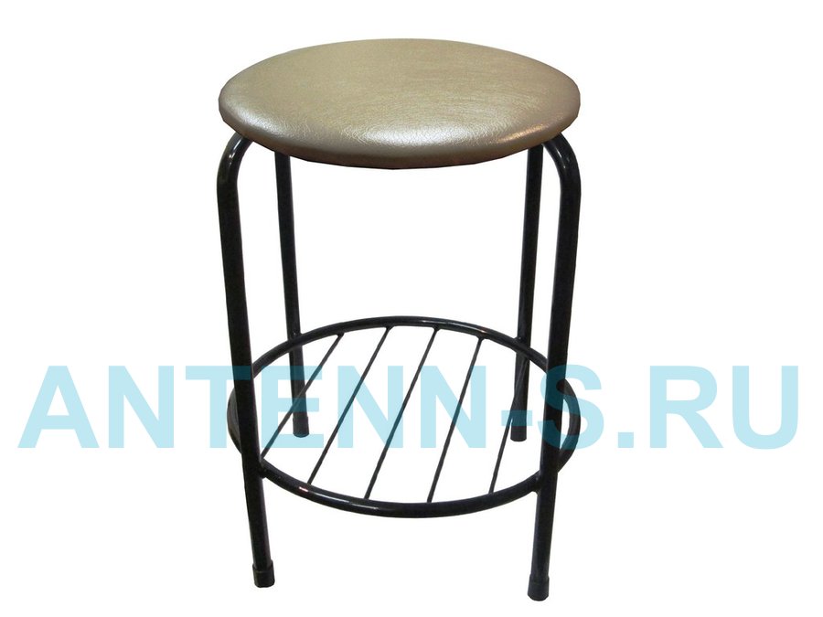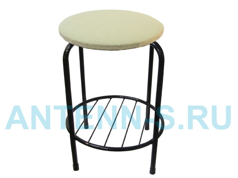 В корзину Купить в 1 клик Табурет с подставкой для ног и полкой "TABURETTO-20488" круглое сиденье, чёрные ножки, бежев., ткань