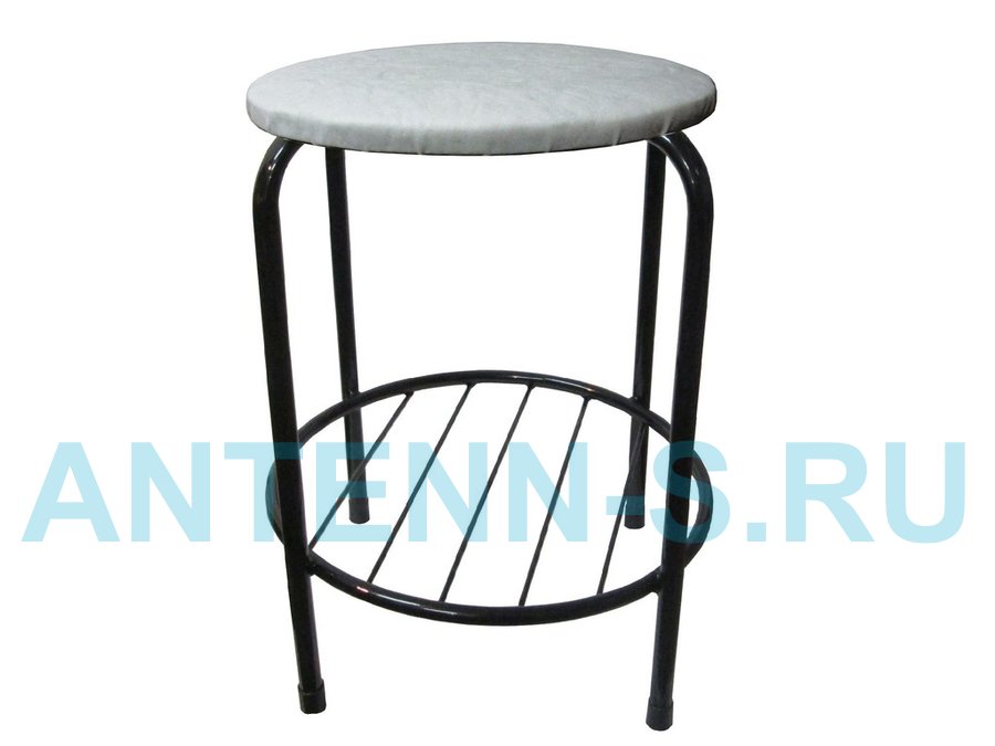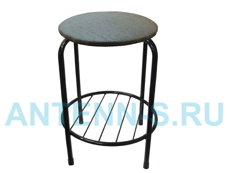 В корзину Купить в 1 клик Табурет с подставкой для ног и полкой "TABURETTO-20489" круглое сиденье, чёрные ножки, серый,экокожа