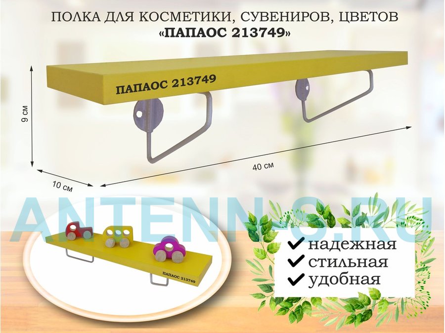 В корзину Купить в 1 клик Полка для косметики, сувениров, цветов, 40х10 см, высота 9 см, серый "ПАПАОС 213749" желтый
