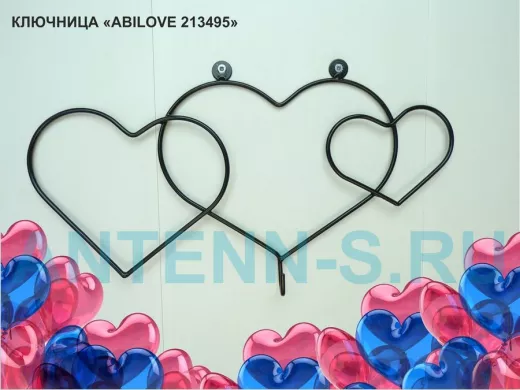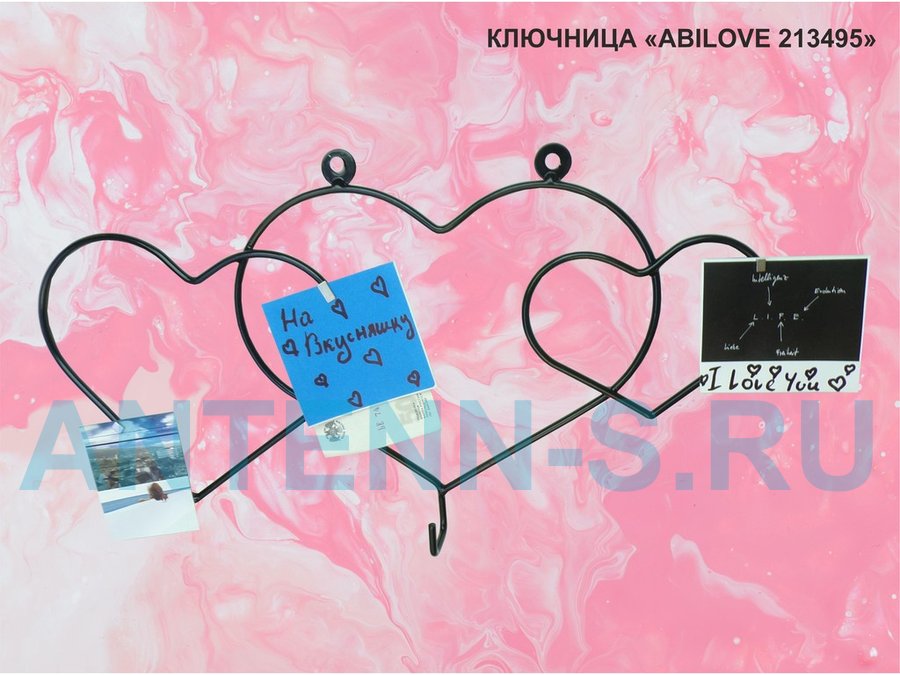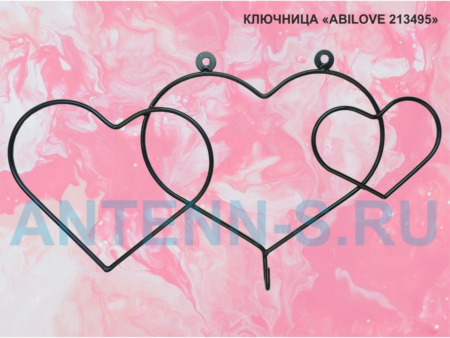 Ключница с крючком и 3 магнитами для записок и фотографий, 3 сердца,вешалка, чёрный "ABILOVE 213495"
