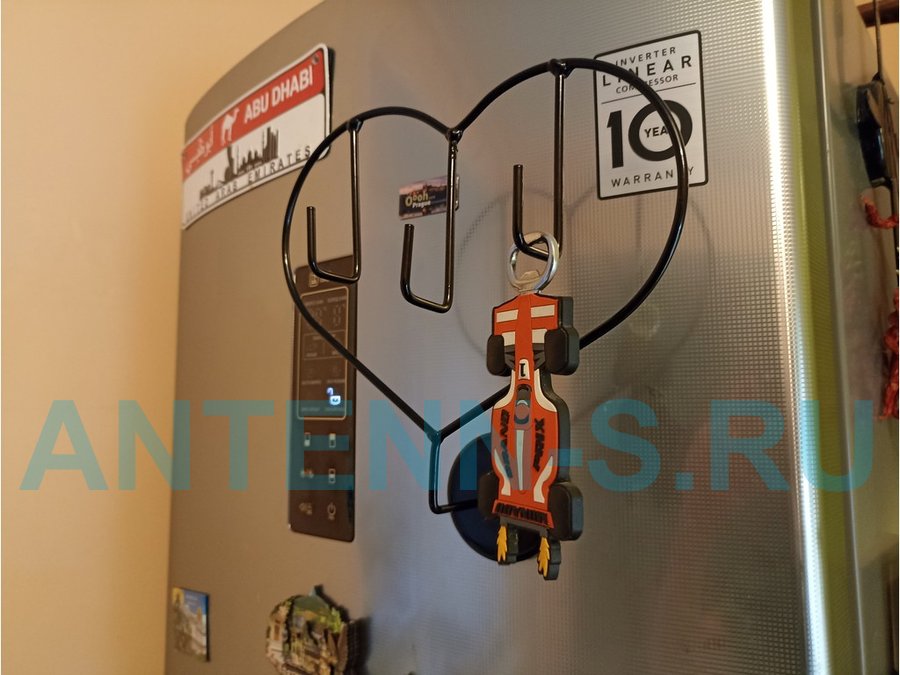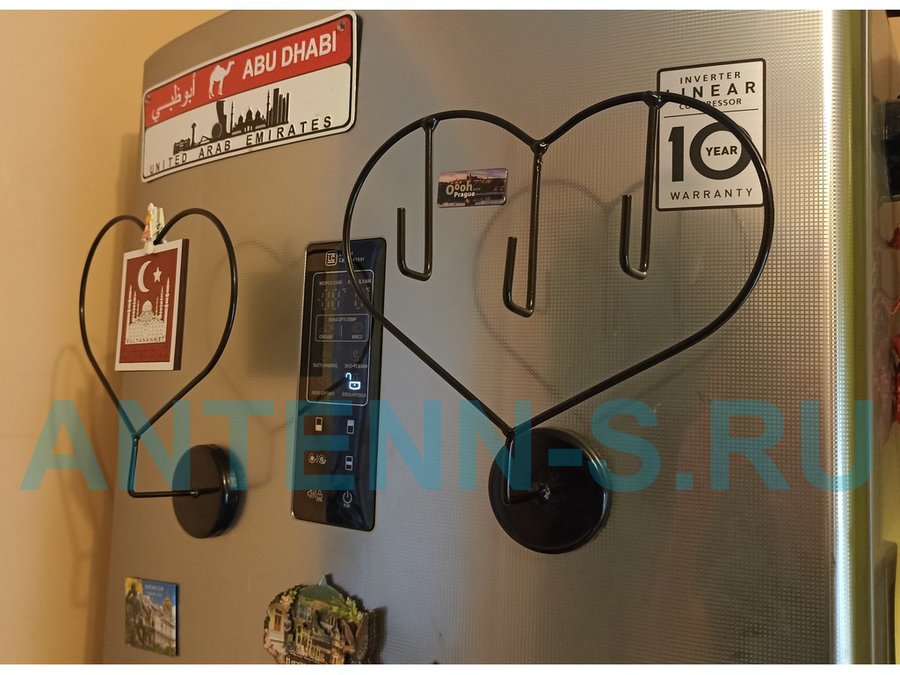 Магнитное крепление "OSINCA 212243" сердечко на холодильник, 3 крючка,ЧЁРНОЕ, высота 16, ширина 21см