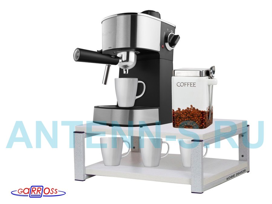 Полка под кофемашину к стене, высота 17см, серый каркас "КОФЕиЯ 204528" полки 30х40см, сосна