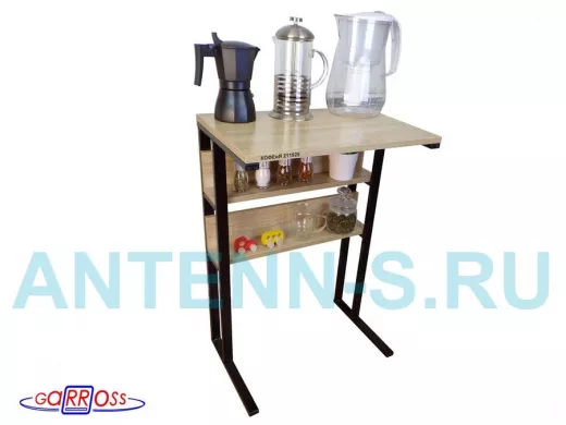 Столик для кофемашины "КОФЕиЯ 211929" высота 79 см с двумя полками для стаканов и банок ,черный, дуб