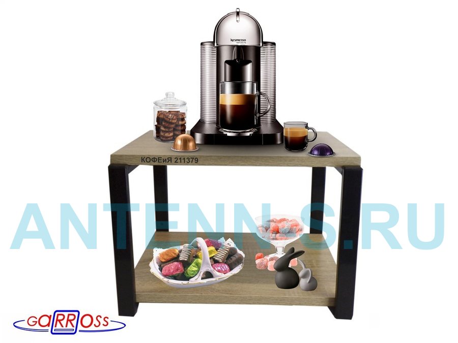 Полка под кофемашину к стене, высота 27см, черный каркас "КОФЕиЯ 211379" полки 30х40см, дуб