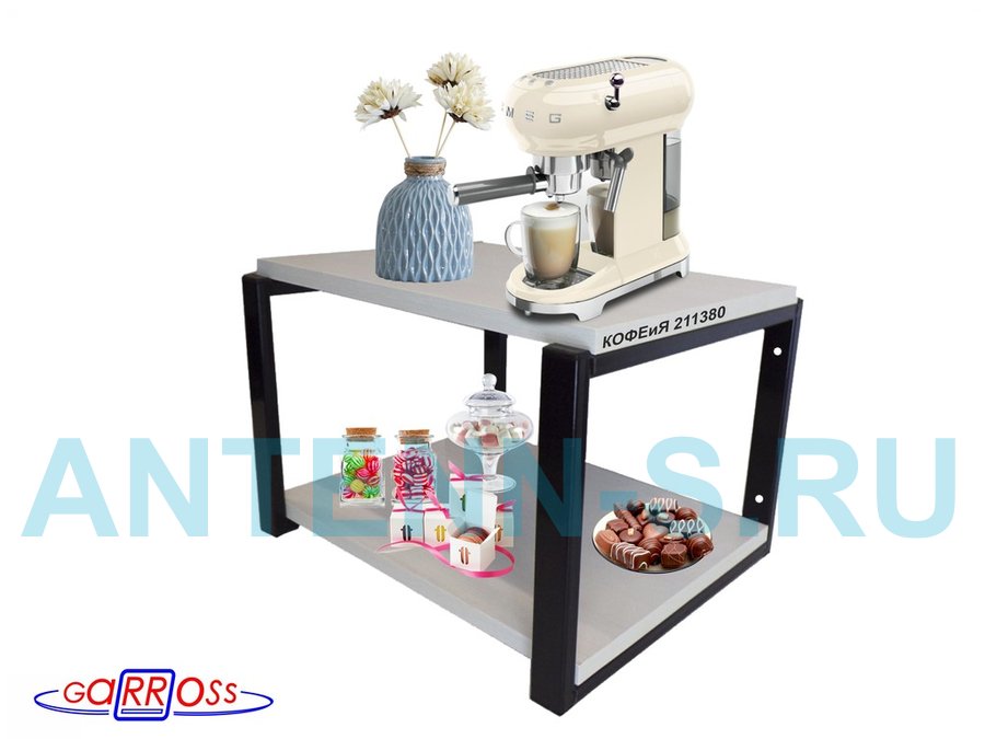 Полка под кофемашину к стене, высота 27см, черный каркас "КОФЕиЯ 211380" полки 30х40см, сосна