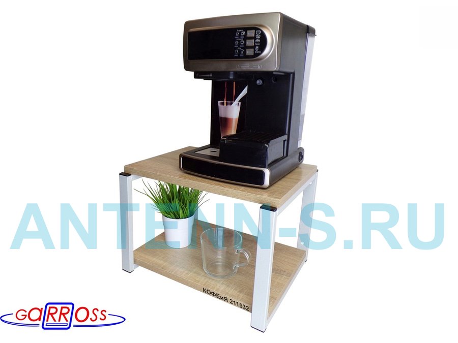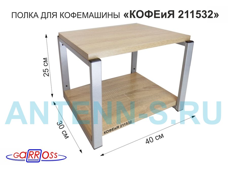 Полка под кофемашину к стене, высота 27см, серый каркас "КОФЕиЯ 211532" полки 30х40см, дуб