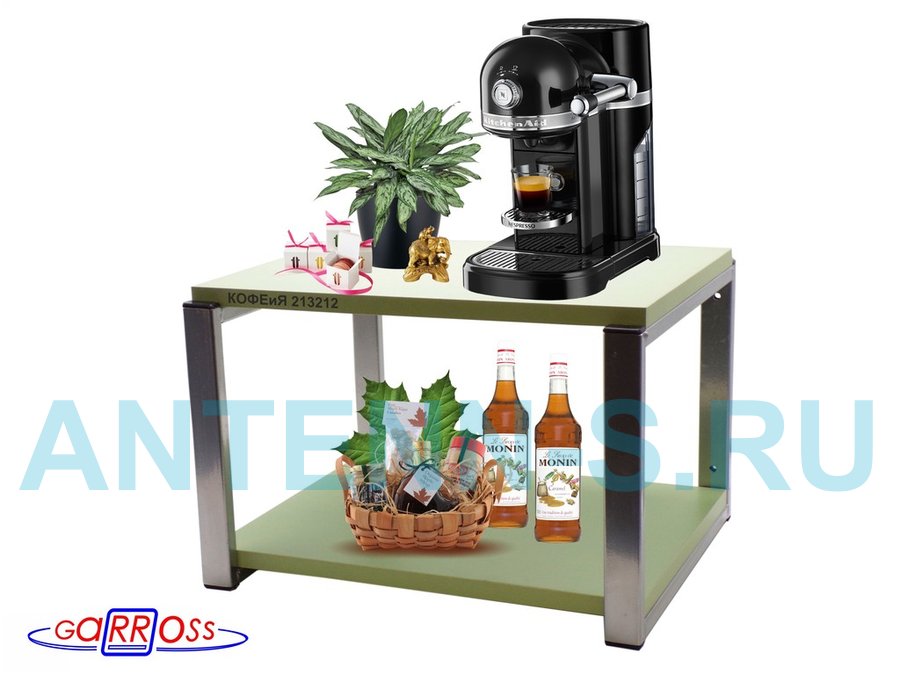 Полка под кофемашину к стене, высота 27см, под хром каркас "КОФЕиЯ 213212" полки 30х40см, салатовый
