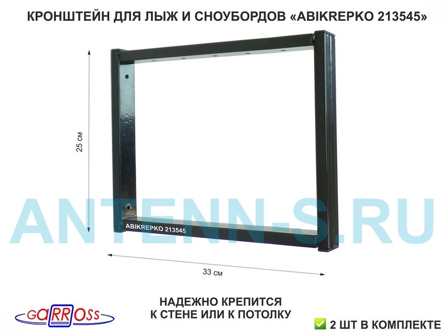 Кронштейны для лыж и сноубордов к стене, потолку, чёрный "ABIKREPKO 213545" 33х25см, 2шт в комплекте