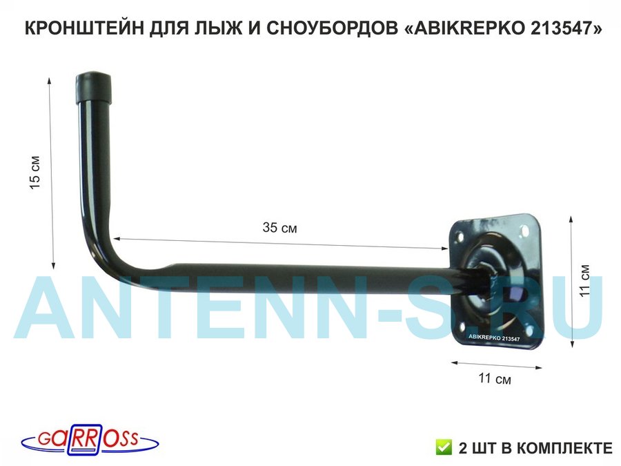 Кронштейны для лыж и сноубордов к стене "ABIKREPKO 213547" вылет 35см, высота 15 см,2 шт в комплекте