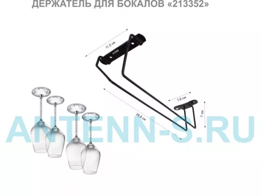 Держателей для бокалов черный (в наборе 1 шт) "LOFTOM-213352" сушилка для фужеров подвесная