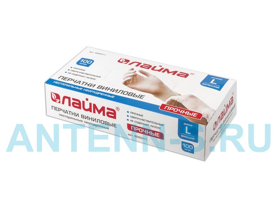 В корзину Купить в 1 клик Перчатки виниловые белые "BR-83105" 50 пар (100 шт.), неопудренные, прочные, размер L (большой)