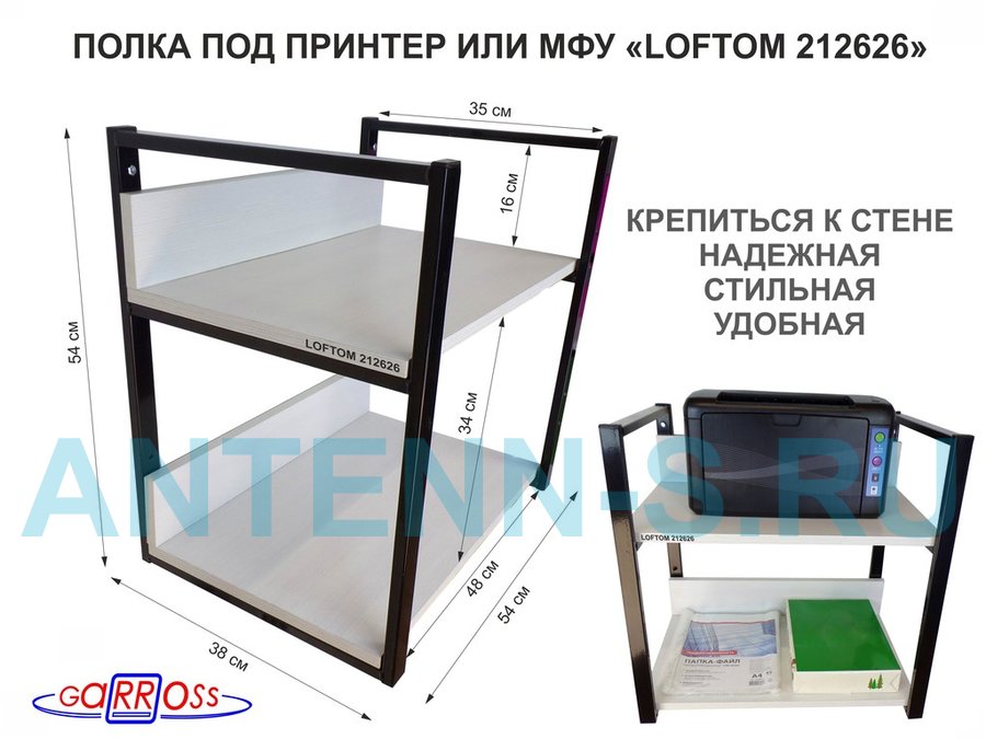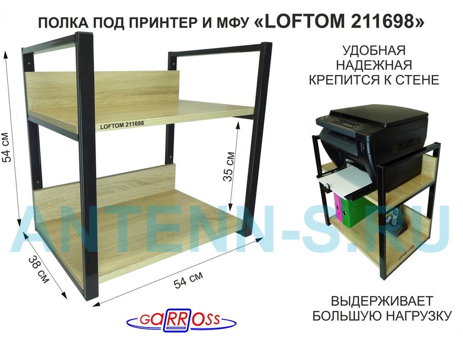 Полки под принтер или МФУ "LOFTOM" высота 54см, с полками 54х35см, с бортиками