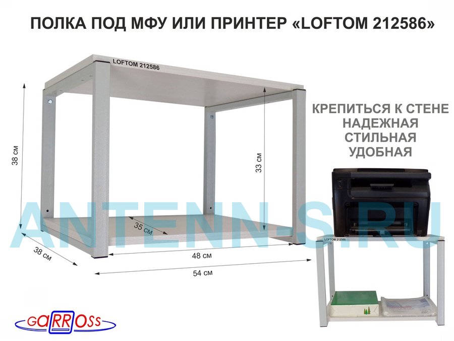 В корзину Купить в 1 клик Полка под МФУ или принтер, высота 38см серый "LOFTOM 212889" две полки 35х54см, лофт