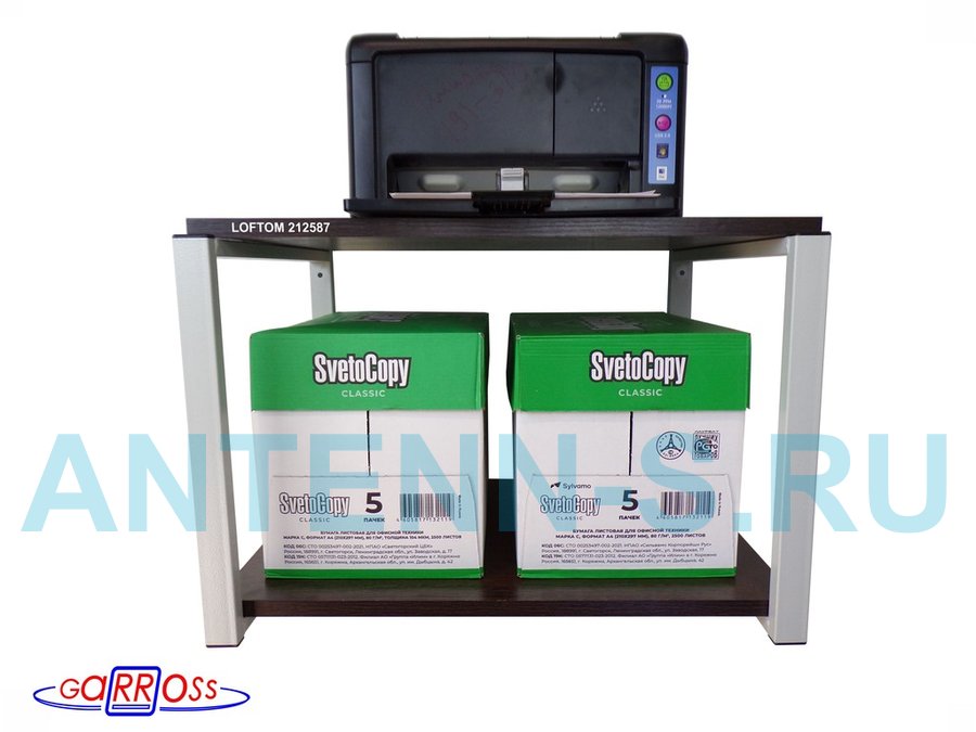 Полка под МФУ или принтер, высота 38см серый "LOFTOM 212587" две полки 35х54см, венге