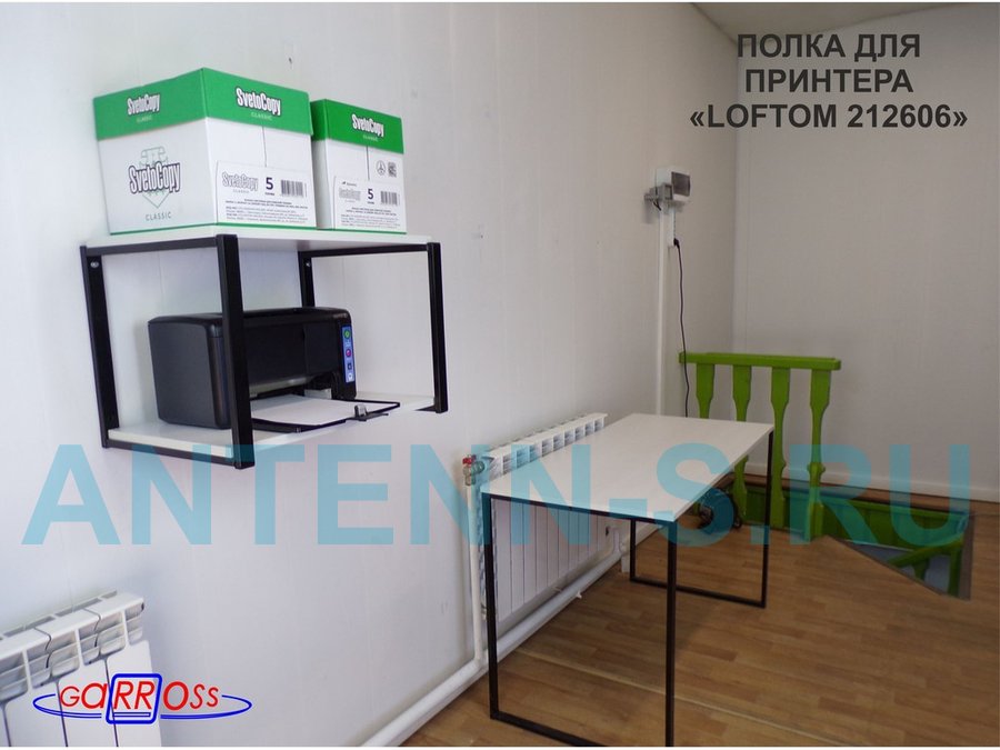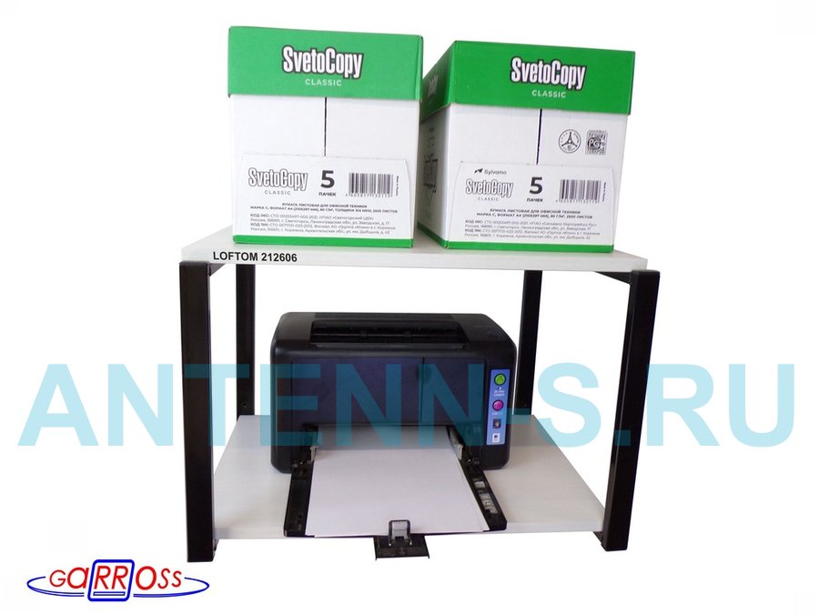 Полка под МФУ или принтер, высота 38см черный "LOFTOM 212606" две полки 35х54см, сосна выбеленная