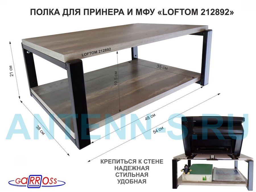 Полки под принтер или МФУ "LOFTOM" высота 21см, с полками 54х35см