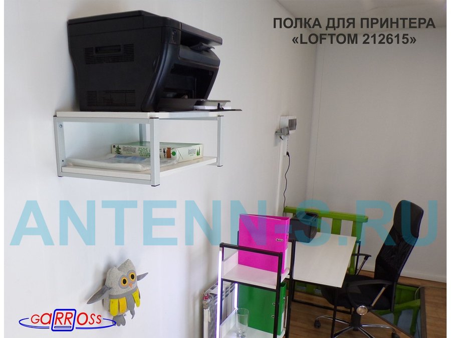 Полка для принтера, подставка для МФУ, 21см серый "LOFTOM 212615" две полки 35х54см,сосна выбеленная