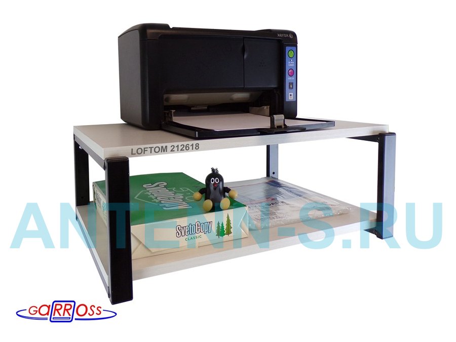 Полка для принтера, подставка для МФУ, 21см черный "LOFTOM 212618" две полки 35х54см, сосна выбелен.