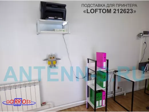 - Полка надежно крепится к стене при помощи анкеров или шурупов с дюбелями, на ней можно разместить принтер, сканер, МФУ и другую офисную технику