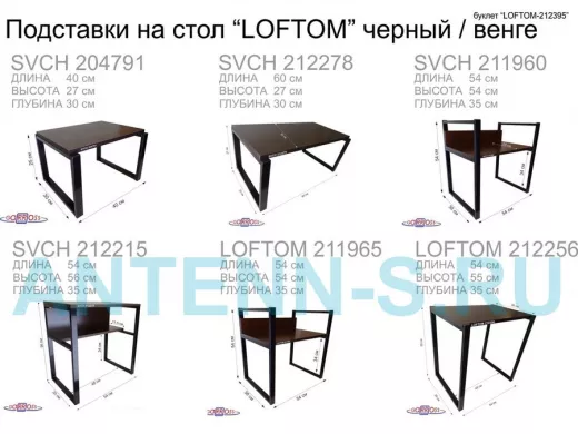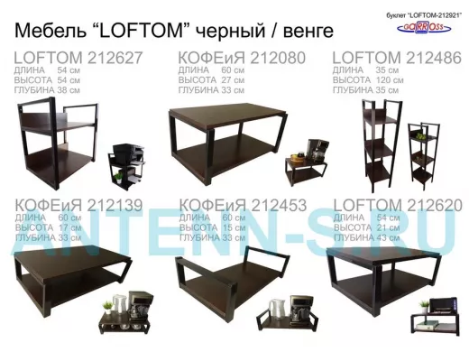 Полка под принтер или МФУ, высота 54см черная "LOFTOM 212904" 2 уровня, 35х54см, венге