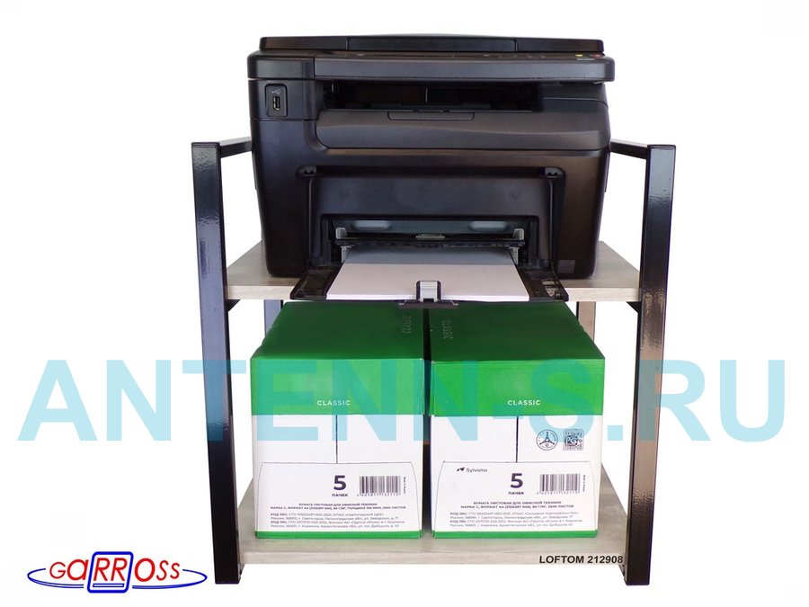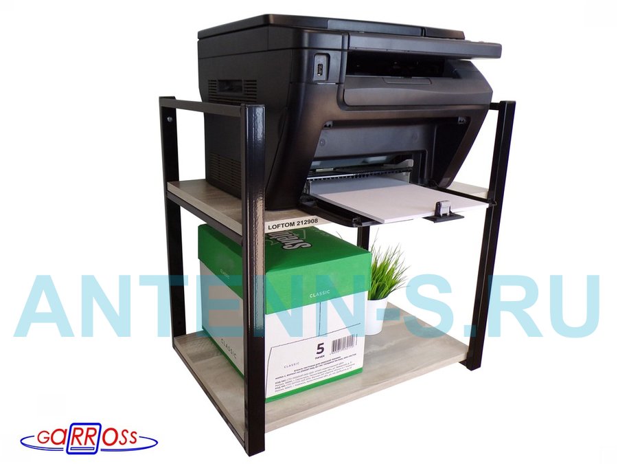 Полка под принтер или МФУ, высота 54см черная "LOFTOM 212908" 2 уровня, 35х54см, лофт