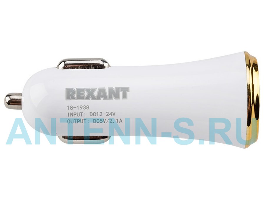 В корзину Купить в 1 клик Автомобильный адаптер REXANT 2хUSB с индикацией (АЗУ) (1000+2100 mA) белая