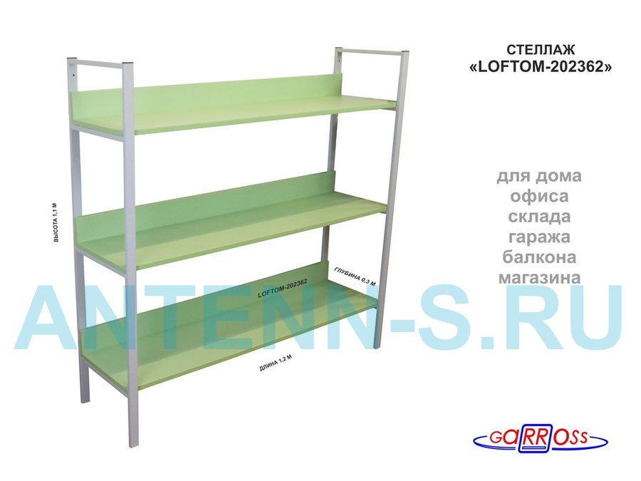 Стеллаж 3 полки, серый "LOFTOM-202362" салатовый, высота 120, ширина 35, длина 120см, полка 120х30см